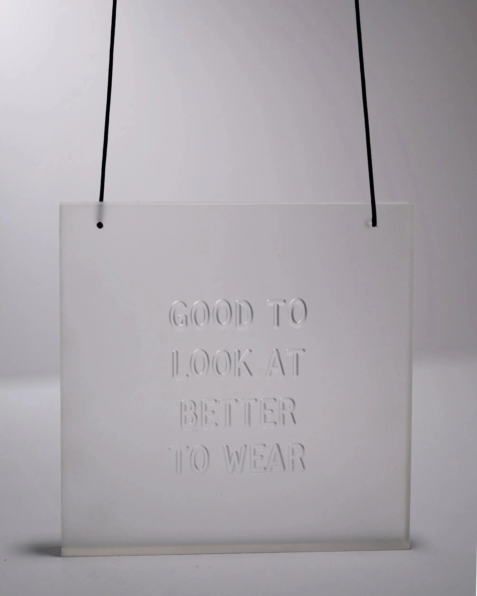 I habitually gather texts from anywhere and everywhere for my work. For this exhibition however, I have specifically delved into books and catalogues about PopArt and conceptual artists, show card/ sign writing books from the early 1900’s and general advertising ephemera. Lifting words and phrases that, once removed from their original context, engraved into a new surface and material then placed on the wall or on a body allows the texts to open up to any number of possible meanings.